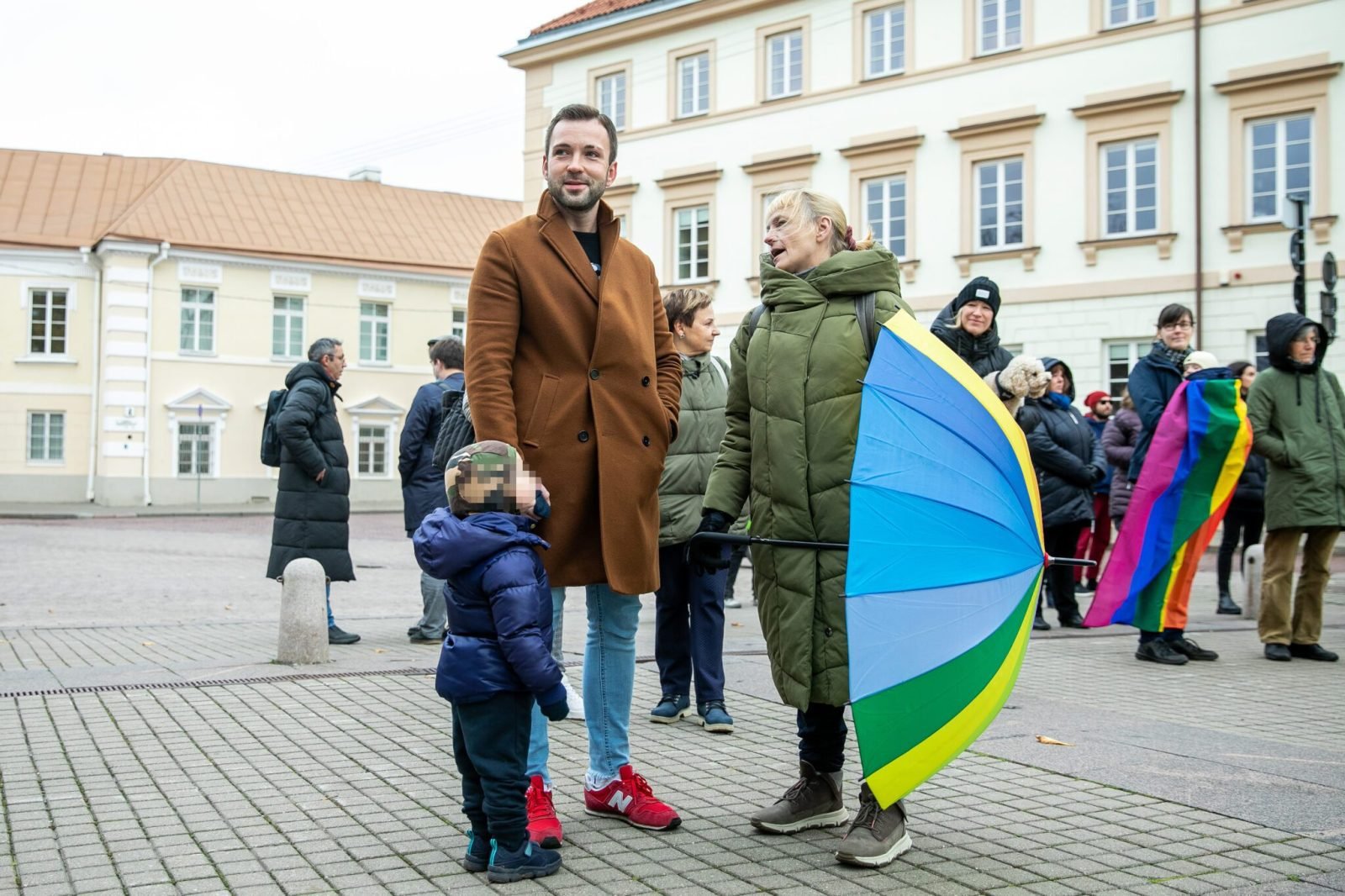 Prie Prezidentūros šeštadienį rinkosi LGBT bendruomenę palaikantys asmenys. Renginys suorganizuotas po to, kai vieno vaiko motina išplatino viešą kreipimąsi į prezidentą Gitaną Nausėdą.