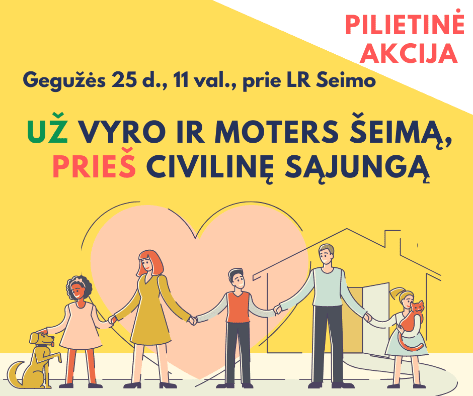 Šeimos vertybes ginančios visuomeninės organizacijos ir aktyvūs piliečiai gegužės 25 d. 11 valandą renkasi pilietinei akcijai prie Seimo.