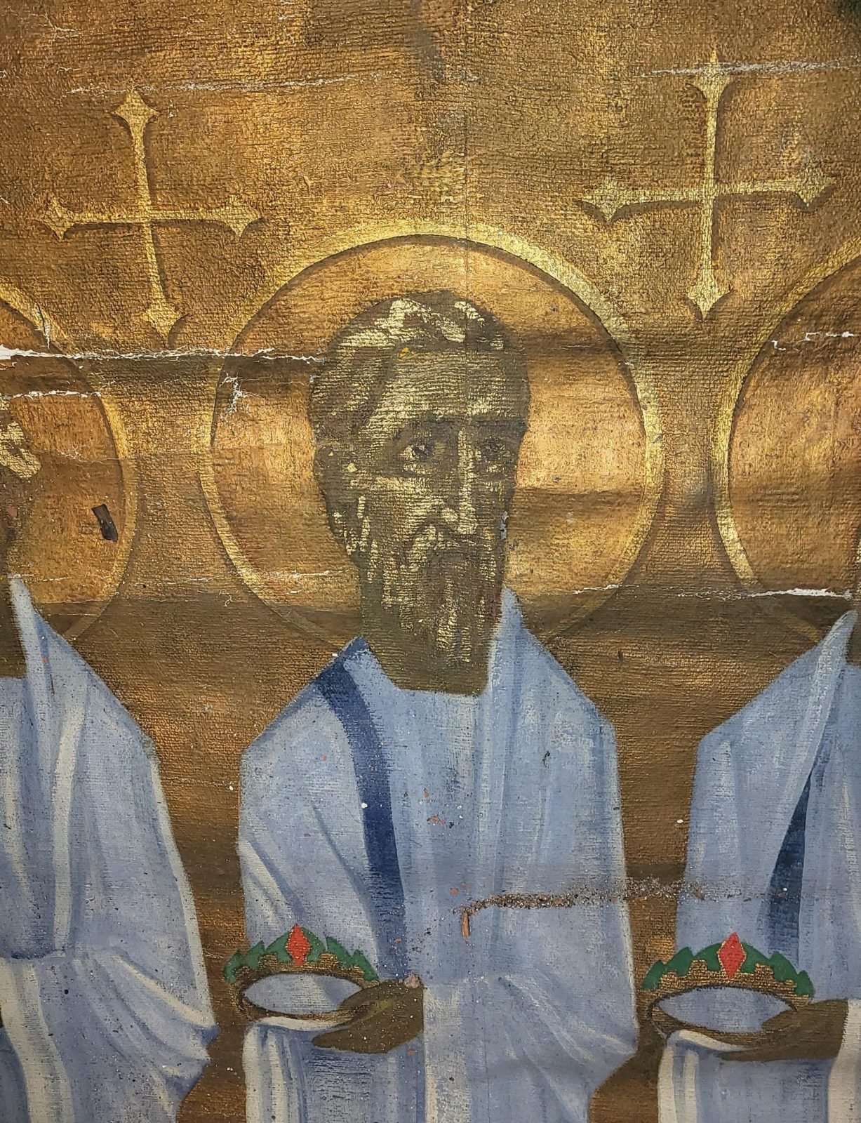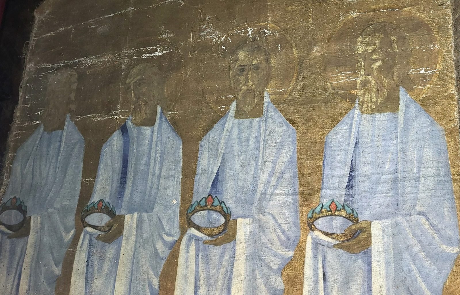 Trys maždaug 2 m pločio ir beveik 3 m aukščio drobės su apaštalais iškeliavo į vienuolyno patalpas, kuriose temperatūra panaši į buvusią palėpėje. Čia jos bus tol, kol sulauks restauratorių rankų.