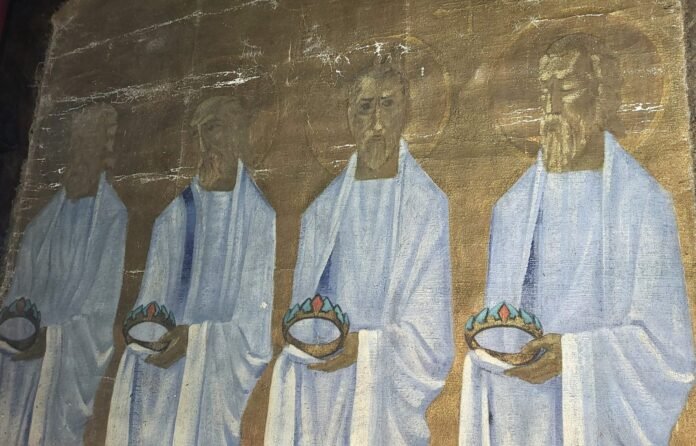 „Tyčia ar netyčia jie čia buvo pasislėpę, ir kiek metų jie pragulėjo niekas nežino. Stilizuotos bizantinės manieros apaštalų figūros darnia dera su arkangelų vitražais ir gotikine bažnyčios architektūra”, – priduriama seserų pranešime.