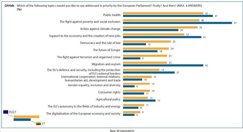 Net 57 proc. Lietuvos piliečių pirmuoju politinės veiklos prioritetu minėtoje Europos Parlamento apklausoje nurodė skurdą ir atskirtį.