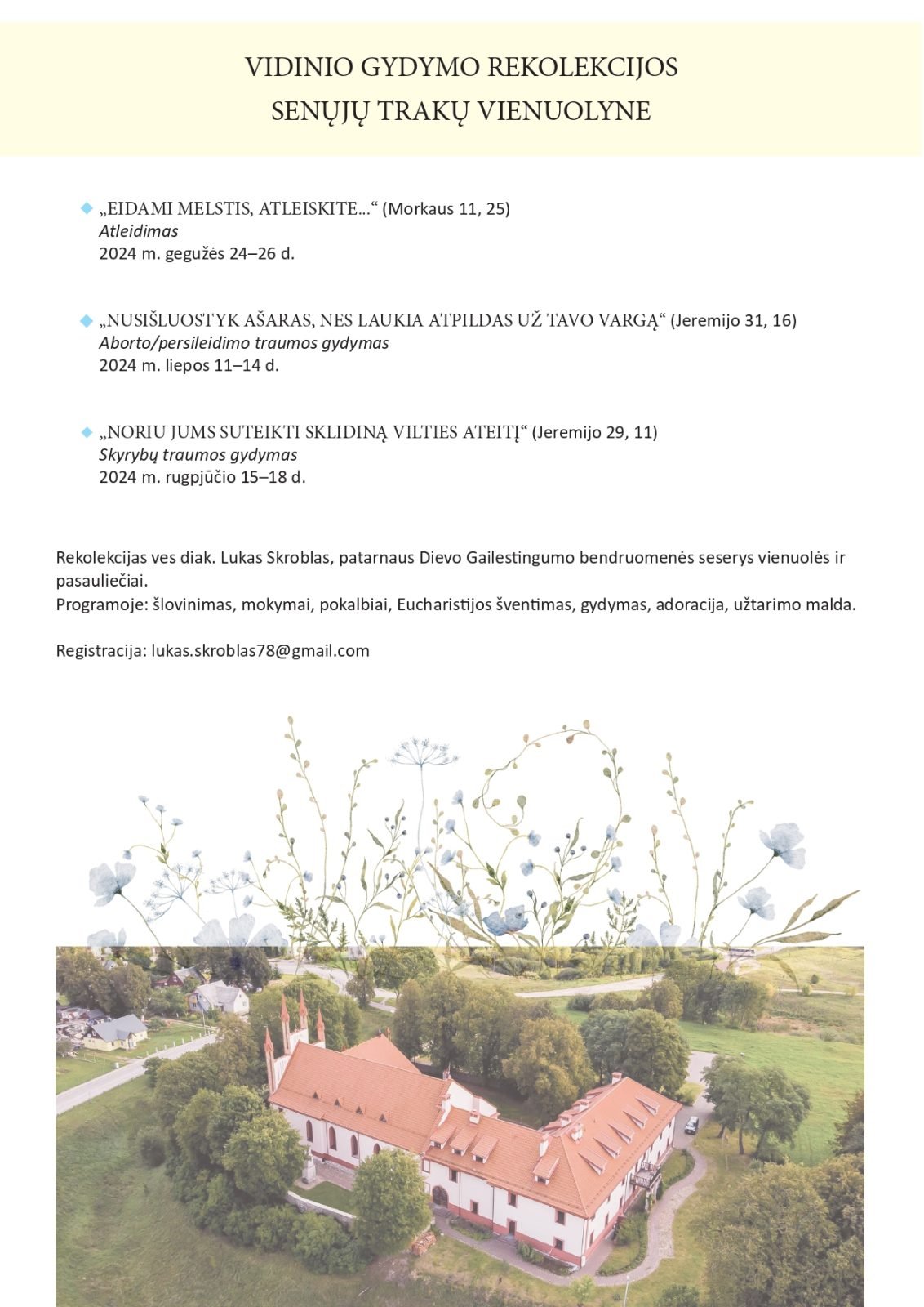 REIKALINGA JŪSŲ PARAMA RENGINIŲ ANONSAI Rekolekcijos Senųjų Trakų vienuolyne 2024 05 03 11:30 76 FacebookLinkedinTelegramViberWhatsAppTwitterEmailSpausdinti: žymosrekolekcijosSenieji Trakai Dalintis FacebookLinkedinTelegramViberWhatsAppTwitterEmailSpausdinti: Ankstesnis straipsnisGegužės 4-ąją šalies ugniagesiai gelbėtojai minės Šv. Florijono dieną, bus aukojamos MišiosKitas straipsnisG. Nausėda už nuopelnus apdovanos motinas ir globėjas SUSIJĘ STRAIPSNIAI Advento piligrimystė į Šiluvą Lietuvoje lankysis vokiečių filosofas, katalikų teologas ir rašytojas dr. Johannesas Hartlis Mažosios Lietuvos gyventojų genocido diena REKOMENDUOJAME Seimas priėmė nepalankų sprendimą Jehovos liudytojų bendruomenei PARAMA NAUJAUSI Marius Parčiauskas. Smurtas prieš vaikus? Skaitytojų paštas. Paberžės bažnyčia tampa kultūros namais? Dr. Johannesas Hartlas. Geroji Naujiena vs. Bloga komunikacija Vilkaviškio katedroje paminėta Negimusio kūdikio diena Krikščioniškojo roko grupė „Gyvasis vynmedis“ laužo stereotipus Advento piligrimystė į Šiluvą Popiežius Leonas XIV paskelbė apaštališkąjį laišką skirtą Nikėjos susirinkimui Būtume dėkingi, jei mus paremtumėte PARAMA