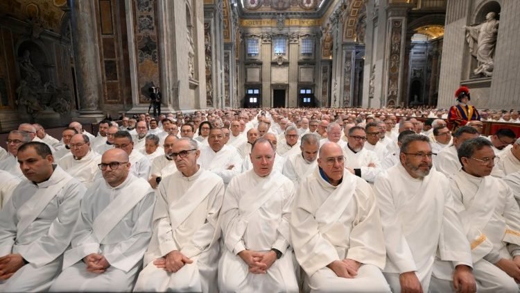 „Broliai diakonai, visus darbus, kuriuos neatlyginamai darote, visada atlikite su šypsena, nesiskųsdami ir nesiekdami pripažinimo, palaikydami vieni kitus“, – sako popiežius pabrėždamas, kad šios nuostatos reikia laikytis ir santykiuose su vyskupais ir kunigais. „Taip jūsų dosni veikla taps tiltu, jungiančiu altorių su gatve, Eucharistiją – su žmonių kasdienybe.“