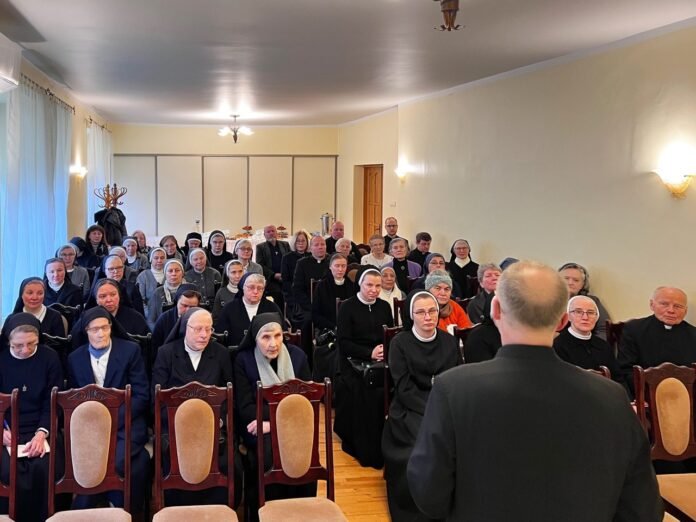 Konferencija, ar, greičiau, meditacija pašaukimo tema su pašvęstaisiais dalijosi Šakių parapijos klebonas kun. Vytautas Antanas Matusevičius. Jos centre – pora eilučių iš Evangelijos pagal Morkų: Jėzus užkopė ant kalno ir pasišaukė, kuriuos pats norėjo, ir jie atėjo pas jį. Ir jis paskyrė Dvylika, kad jie būtų kartu su juo ir kad galėtų siųsti juos skelbti žodžio ir jie turėtų galią išvarinėti demonus (Mk 3, 13-15). Evangelijos ištrauka nurodo dvilypį pašaukimo tikslą: maldą („kad jie būtų su juo“), ir misiją („kad galėtų siųsti juos“).