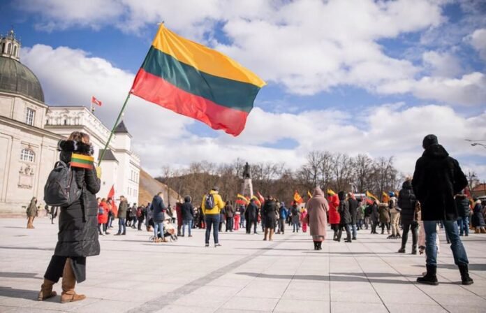 Apie 1,5 tūkst. žmonių šeštadienį buvo susirinkę Vilniuje, Katedros aikštėje, protestuodami prieš pandemijos valdymo politiką.