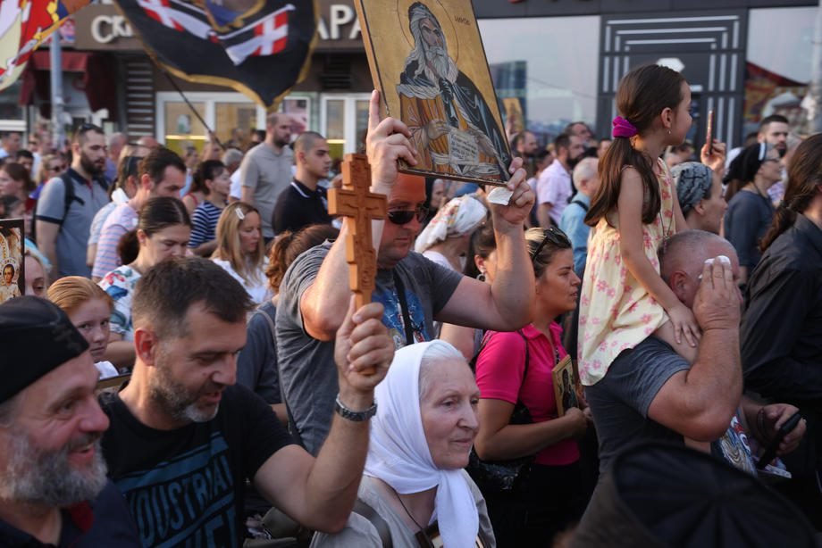 Sekmadienį kreipdamasis į minią serbų ortodoksų vyskupas Nikanoras sveikino valdžios sprendimą neleisti „niekinti mūsų šalies, Bažnyčios ir šeimos“.