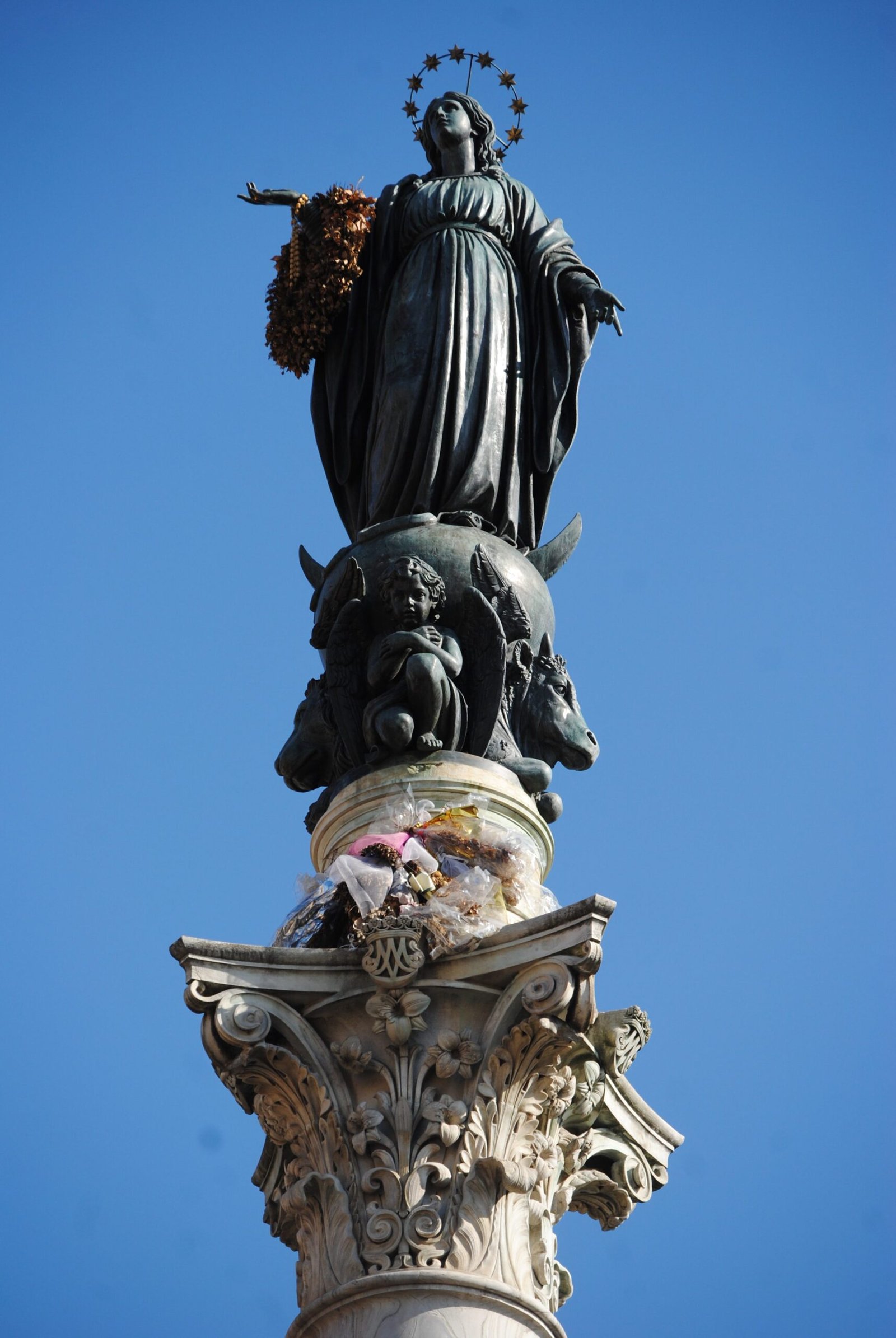 Ant kolonos prie Ispanijos aikštės pastatyta skulptoriaus Giuseppe Obici sukurta bronzinė 4 metrų aukščio Nekaltai Pradėtosios Marijos statula. Marija pavaizduota gimtajai nuodėmei nepavaldi ir ją nugalinti moteris: ji stovi virš pusmėnulio, ant žemės gaublio, koja primynusi žaltį – gimtosios nuodėmės simbolį.