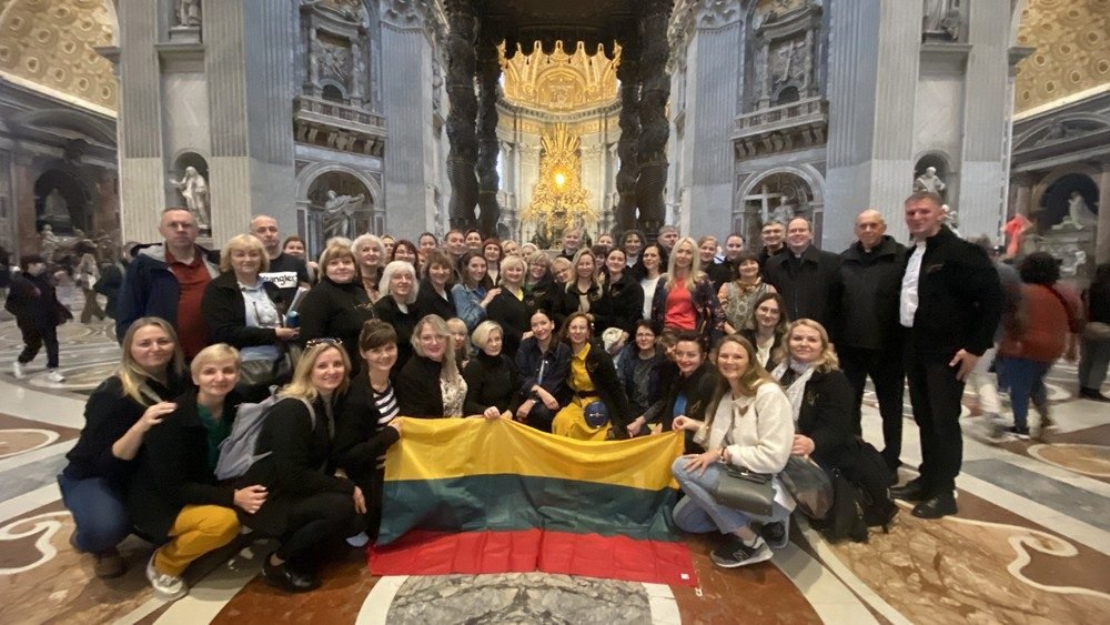Audiencijos pabaigoje Šiaulių vyskupijos katedros choras „Džiaugsmas“ Šv. Petro aikštėje giedojo garsiąją Lurdo Marijos giesmę „Dangaus Karaliene, Marija meili“.