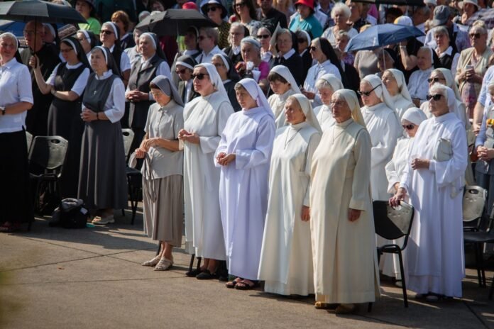 Arkivyskupas sveikino pašvęstųjų seserų šeimą Lietuvoje – į Šiluvą melstis atvyko daugiau kaip 20 vienuolinių kongregacijų sesių, kurios tarnavo liturgijoje: giedojo jungtiniame chore drauge su seminaristais ir Garliavos bažnyčios choristais, skaitė skaitinius, dalyvavo su broliais atnašų procesijoje.