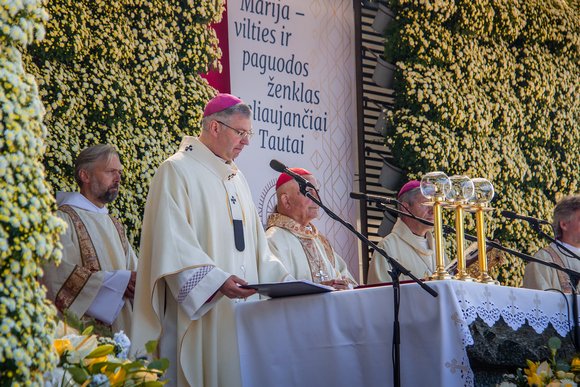 „Drauge su Dievo Sūnaus Motina jos Gimimo proga pagerbiame visas mergaites ir moteris, kurios atsakingai dalyvauja gyvybę nešančioje meilės paslaptyje. Moters teisių gynimas lieka sunkiai suprantamas, kai nesirūpinama kovoti prieš moters ir motinos niekinimą vos ne kiekviename žingsnyje. Mergelė Marija skatina gerbti kiekvieną mergaitę, kuri brangina savo kilnumą, ir kiekvieną motiną, kuri turi drąsos priimti iš Dievo rankų gyvybės paslaptį“, – sakė kardinolas Sigitas Tamkevičius SJ, vadovavęs iškilmingai Eucharistijai ir pasakęs homiliją.