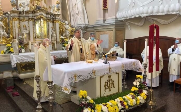 Iškilmingai Eucharistijai vadovavo arkivyskupas Kęstutis. Jis kvietė mestis už pašaukimus ir jaunų širdžių atsiliepimą. „Savo homilijoje arkivyskupas atkreipė dėmesį į Jėzaus žodžius Nikodemui „jums reikia atgimti iš aukštybės“ (Jn 3, 7), komentuodamas juos kaip naują velykinį paraginimą iškelti Dievą pagrindu ir kelrodžiu tarp visų kitų savo gyvenimo reikalų, kad Jis nebūtų „vienas iš…“ Vis dar siaučiančios pandemijos tikrovėje viltis buvo stiprinama, be kita, Šiluvoje meldžiantis už pasaulį, kad Prisikėlimo šviesa parodytų jam naują kryptį, taip pat už pasiaukojančius medikus, už netikėtai mirštančiuosius nuo koronaviruso infekcijos”, – apibendrinama maldos intencija .