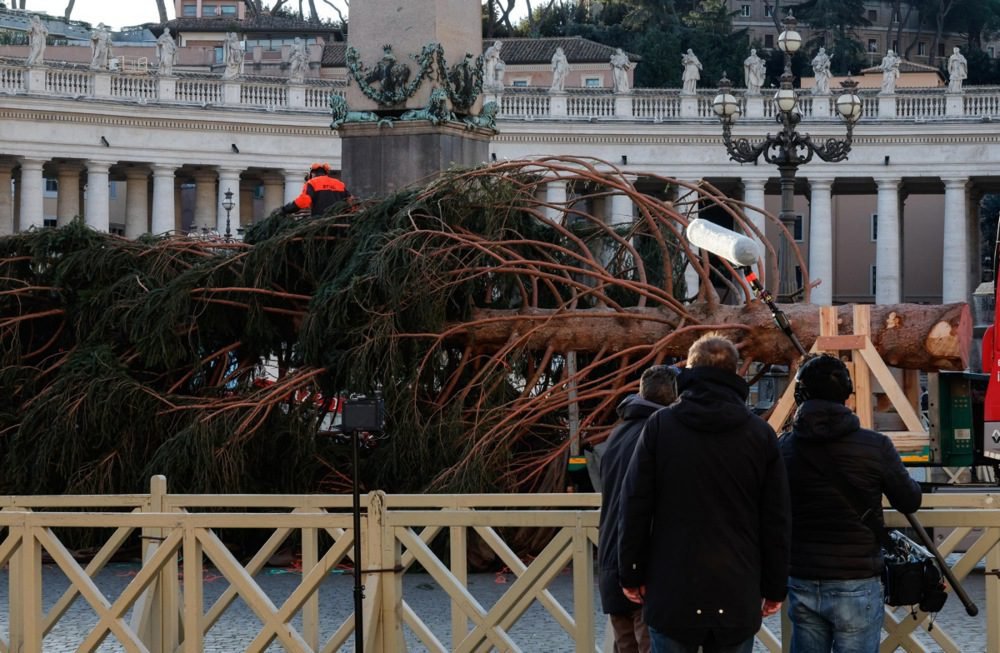 Šeštadienio, gruodžio 9 d., popietę Švento Petro aikštėje įvyks prakartėlės atidengimo ir Kalėdų eglės įžiebimo ceremonija, todėl gruodžio 5 d., antradienį, vietos darbininkai ruošė eglę iš Italijos Pjemonto regiono, kuri šiandien buvo atvežta į aikštę.