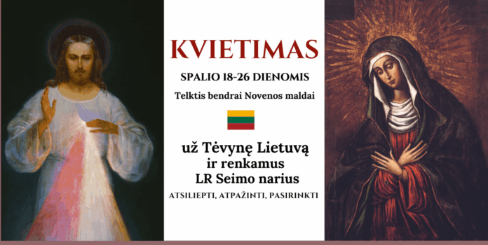 Maldos akcijos „Už Tėvynę Lietuva ir renkamą valdžią” iniciatyvinė grupė kviečia visus tikinčiuosius ir vėl susitelkti maldoje ir spalio 18 d. – 26 d. melstis noveną (devyndienį) į Švč. Jėzaus Širdį už Tėvynę Lietuvą ir renkamus LR Seimo narius.