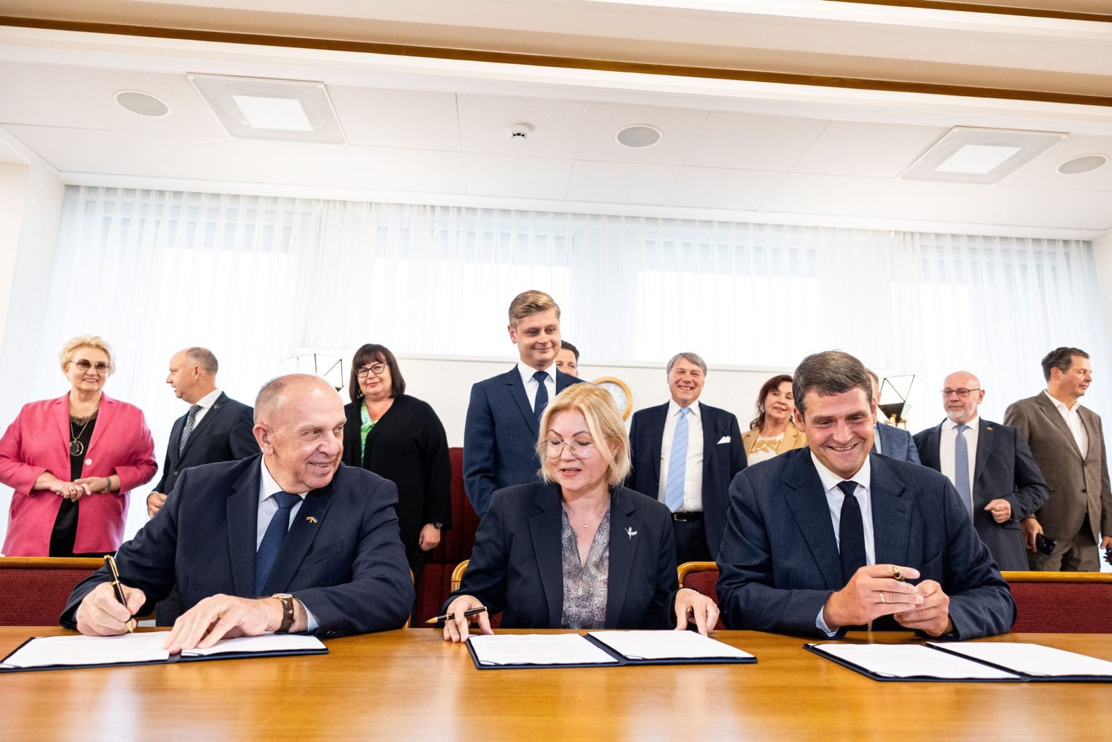 Socialdemokratų, „aušriečių“ ir „valstiečių“ frakcijos pirmadienį pasirašė susitarimą dėl valdančiosios koalicijos sudarymo.