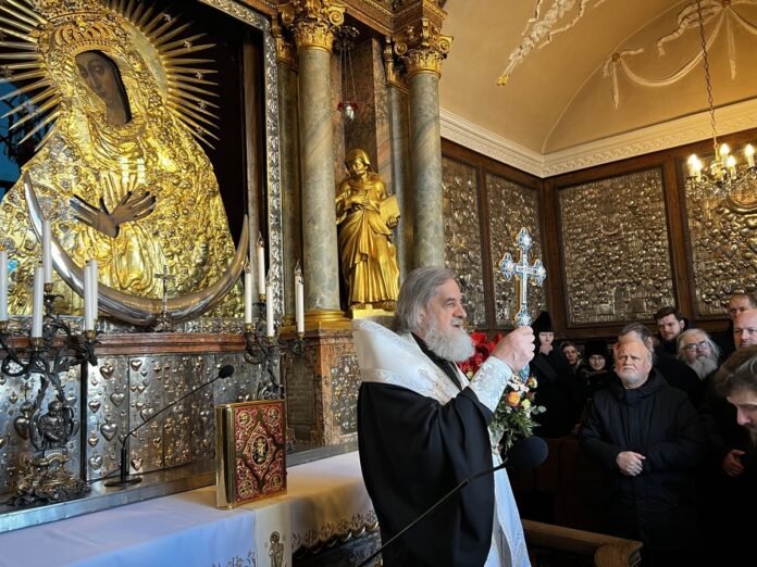Prie šventojo paveikslo vyko intencinės pamaldos, kurioms vadovavo Vilniaus ir Lietuvos metropolitas Inokentijus. Lietuvių ir bažnytine slavų kalbomis buvo meldžiamasi už Lietuvių tautą, valdžią ir kariuomenę, prašoma karo Ukrainoje pabaigos.