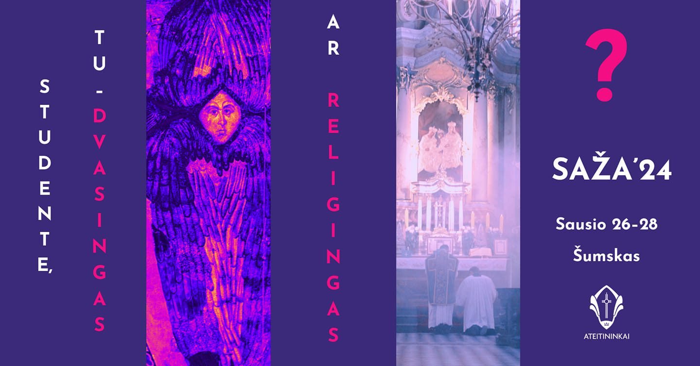„Studente, tu dvasingas ar religingas? O gal šis klausimas tėra provokacija? Dažnai girdime savęs apibūdinimą: „dvasingas, bet ne religingas“ (kuris angliškai jau turi sutrumpinimą – SBNR). Kas po juo slepiasi? Apie tai padiskutuoti Tave kviečiame sausio 26-28 d. Šumske (