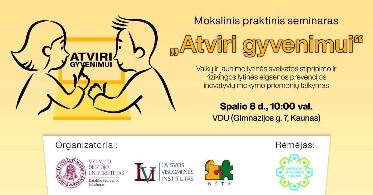 Spalio 8 d. vyks mokslinis – praktinis seminaras „Atviri gyvenimui: vaikų ir jaunimo lytinės sveikatos stiprinimo ir rizikingos lytinės elgsenos prevencijos inovatyvių mokymo priemonių taikymas“.