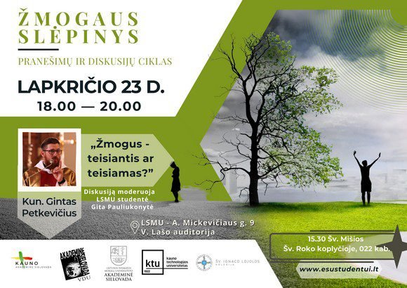Tai Kauno akademinės sielovados bendradarbių šį pavasarį pradėto pranešimų ir diskusijų ciklo „Žmogaus slėpinys“ dalis.