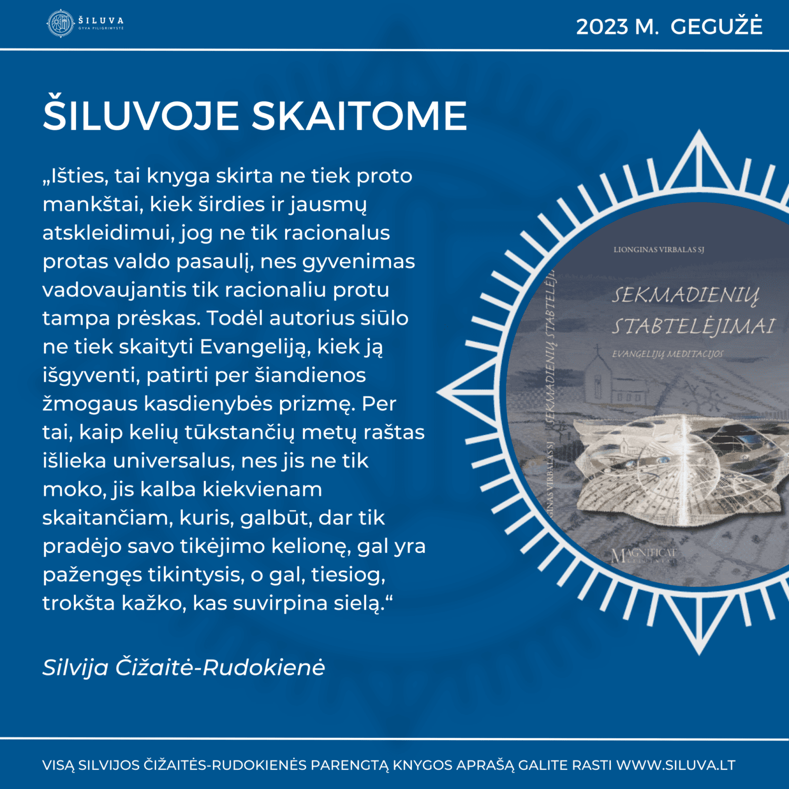 Gegužės 13-ąją – Mergelės Marijos dieną Šiluvoje įvyks arkivyskupo Liongino Virbalo SJ knygos „Sekmadienių stabtelėjimai. Evangelijų meditacijos“ pristatymas. Neabejotina, jog tai knyga, kuri prakalbina širdį, padeda, tarsi kitu žvilgsniu išvysti Evangeliją. Tačiau kelio pradžia – socialiniame tinkle, sekmadienio komentarų pavidalu.