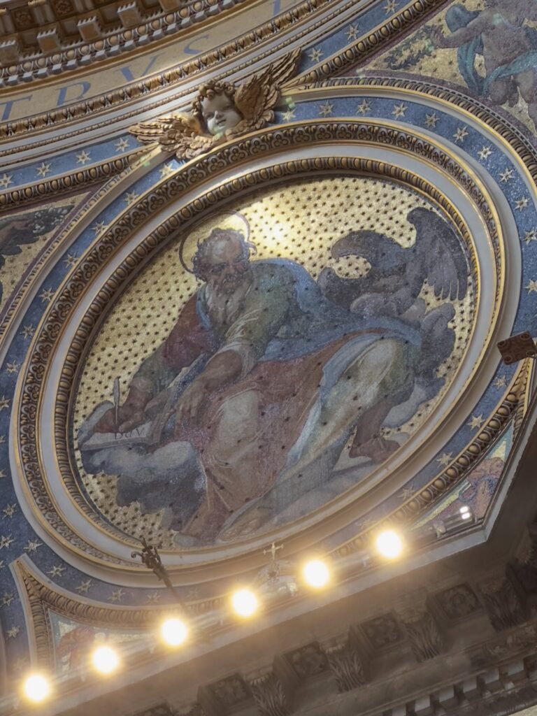 Naujoji paslauga pristatoma praėjus keturiems šimtams metų nuo bazilikos konsekracijos 1626 m., kurią atliko popiežius Urbonas VIII, po daugiau nei šimtmetį trukusių statybų. Naujosios bažnyčios pamatinis akmuo buvo padėtas 1506 m. balandžio 18 d., kai popiežius Julijus II nusprendė statyti naują baziliką dėl ankstesnės, Romos imperatoriaus Konstantino laikais pastatytos šventovės (mirė 337 m.), būklės prastėjimo.