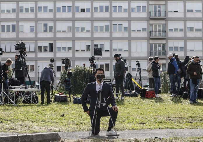 Popiežius „naktį gerai pailsėjo. Jo klinikinė būklė pamažu gerėja ir jis tęsia numatytą gydymą. Šį rytą po pusryčių jis perskaitė keletą laikraščių ir atnaujino darbą. Prieš pietus savo privataus buto (ligonėje) koplyčioje susikaupė maldai ir priėmė Komuniją“, – sakoma Vatikano atstovo Matteo Bruni (Matėjo Brunio) pareiškime.