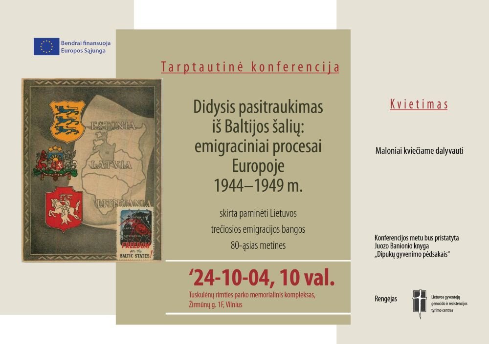 Tarptautinė konferencija „Didysis pasitraukimas iš Baltijos šalių: emigraciniai procesai Europoje 1944–1949 m.“ Skirta paminėti Lietuvos trečiosios emigracijos bangos 80-ąsias metines Maloniai kviečiame dalyvauti Konferencijos metu bus pristatyta Juozo Banionio knyga „Dipukų gyvenimo pėdsakais“