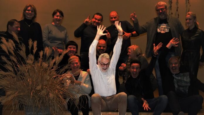 Susitikimo metu spektaklio režisierius Saulius Vaičiulis sveikino visus su Teatro diena, o muzika pasirūpino Vydmantų kapela.