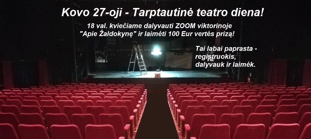 „Teatras netelpa į jokius „rėmus”, – buvo rašoma kvietime, – todėl ypatinga yra švęsti Teatro dieną, kai aplinkui visokių suvaržymų yra tiek daug. Pasijuskime laisvesni šiandien kovo 27 d. 18 val. pabūdami kartu su Vydmantų teatro bendruomene!”, – tokiais žodžiais Teatro dienos proga Vydmantų teatras kvietė pabendrauti su spektaklio „Žaldokynės” personažais ir dalyvauti protmūšyje „Apie Žaldokynę”.