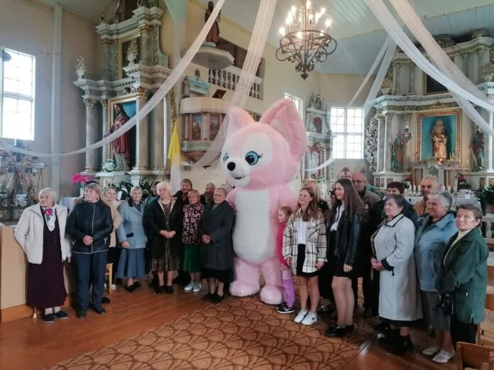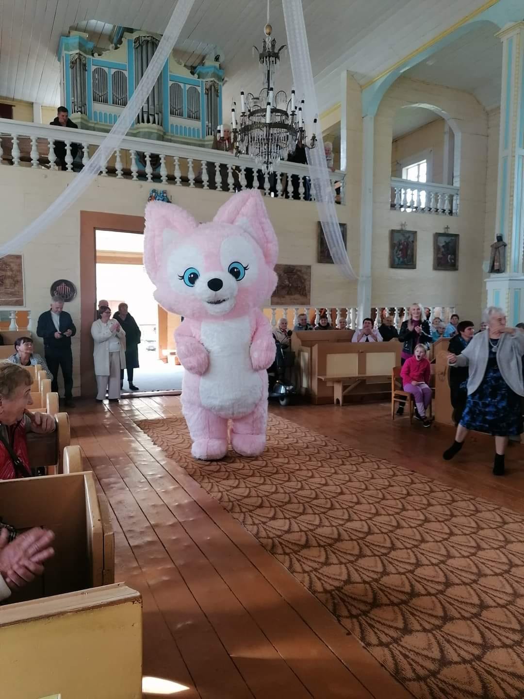 Praėjusią savaitę Pavandenės krašto bendruomenės paskyroje feisbuke pasirodė nuotraukos iš Tarptautinės pagyvenusių žmonių dienos „žaismingo” minėjimo Pavandenės Šv. Onos bažnyčioje. Renginio metu užfiksuotose akimirkose matyti bažnyčioje žmones sveikinantis didelių gabaritų rožinio lapiuko personažas.