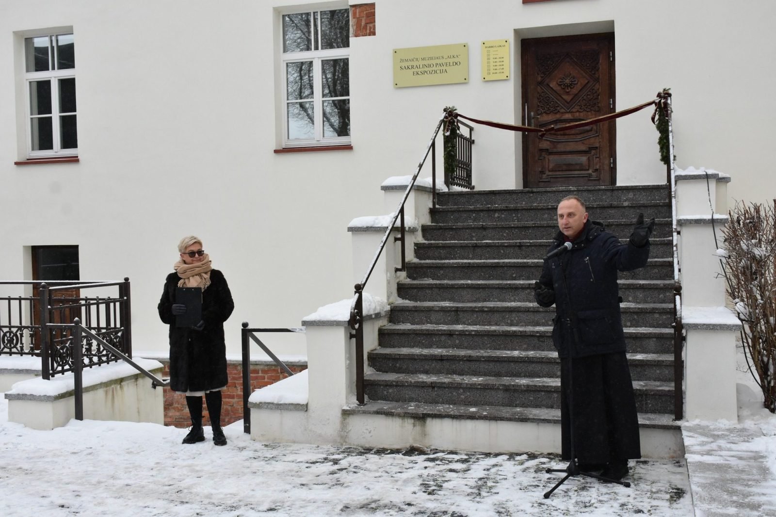 Muziejaus atidarymo juostelę perkirpo Žemaičių muziejaus „Alka“ direktorė Eva Stonkevičienė, Telšių vyskupijos generalvikaras Vilius Viktoravičius ir Telšių rajono savivaldybės meras Kęstutis Gusarovas.