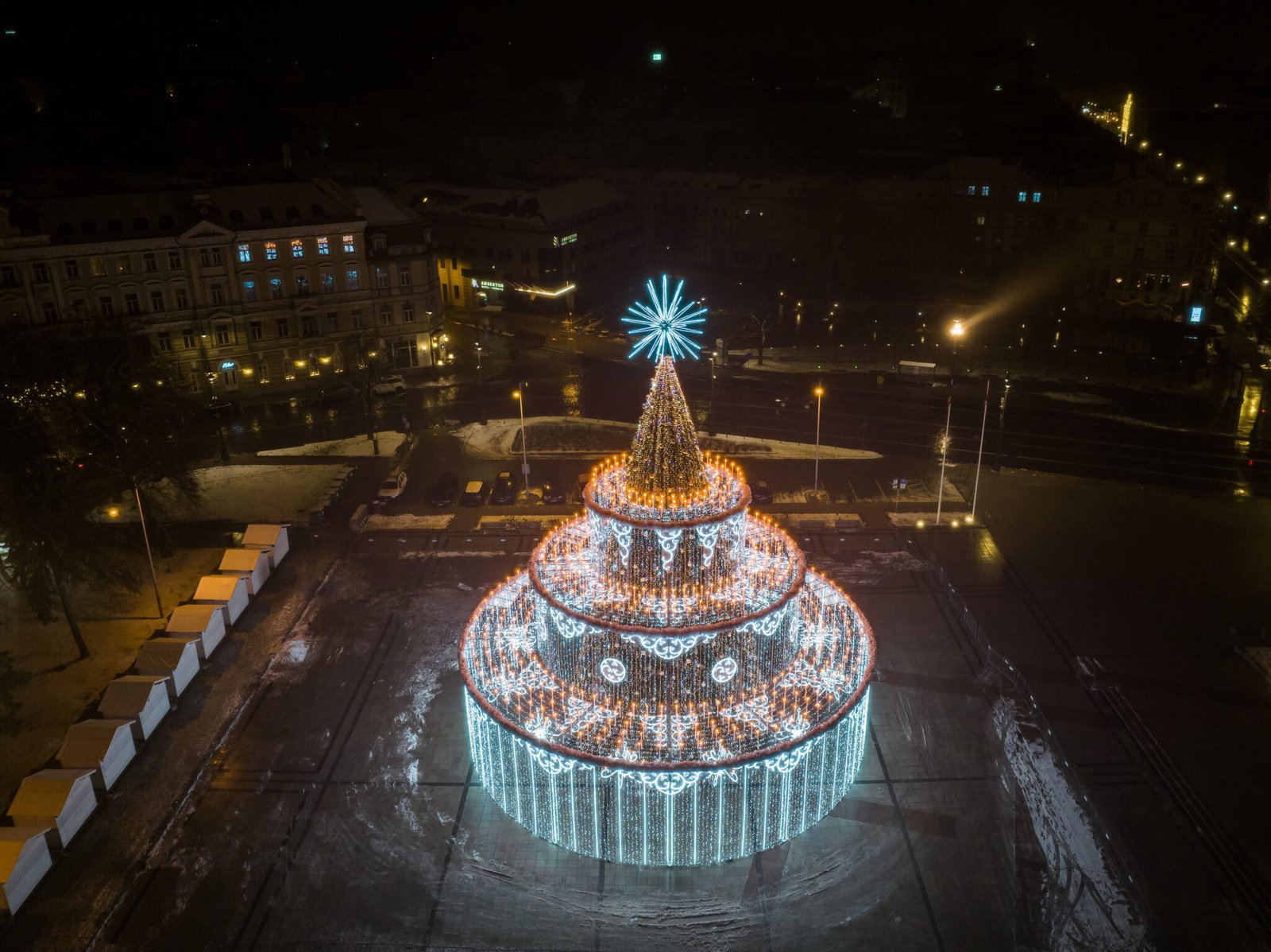 Lapkričio 26-osios vakarą sostinės Katedros aikštėje įžiebta Kalėdų eglė – įspūdingo dydžio jubiliejinio torto formos meninė kompozicija „Su Gimtadieniu, Vilniau!” kviečia visus metus švęsti sostinės 700-ąjį jubiliejų.