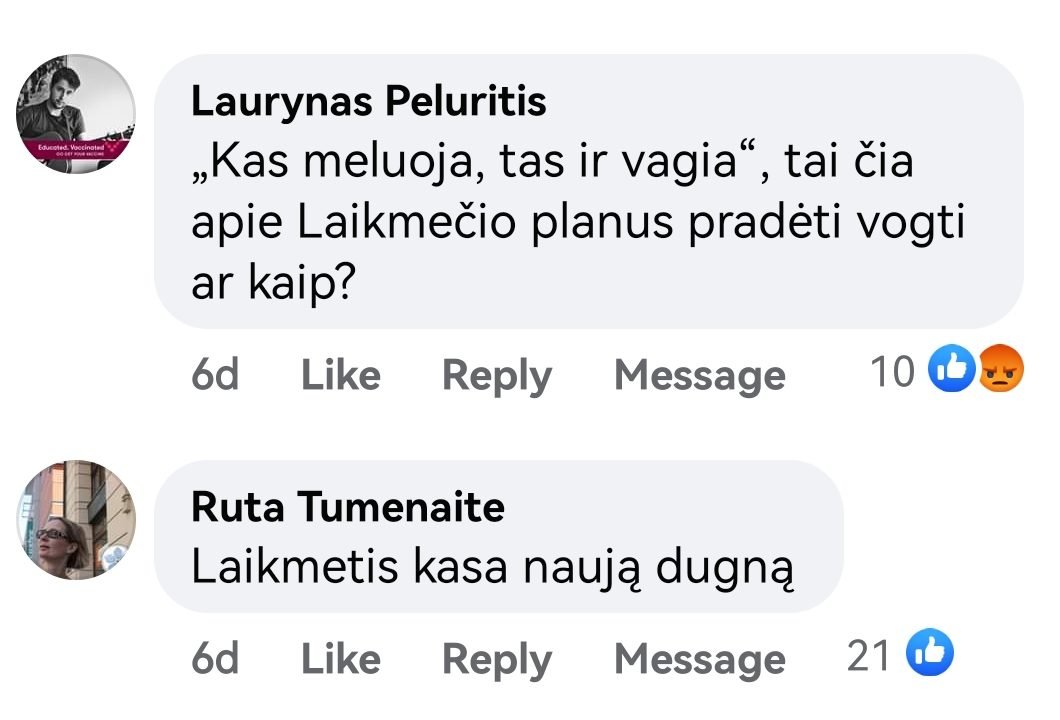 Vieša paslaptis, kad „Laikmečio“ atsiradimas ne visiems sukėlė malonius jausmus. Tuo, pavyzdžiui, galėjome neseniai įsitikinti savo feisbuko paskyroje sulaukę tokių komentarų: „Viluckai, elgiatės kaip paskutinės šiukšlės“, „Čia apie Laikmečio planus pradėti vogti ar kaip?“, „,Laikmetis‘ kasa naują dugną“. Būtų galima nekreipti dėmesio į šiuos žeminančius komentarus, jei ne jų autorystė.
