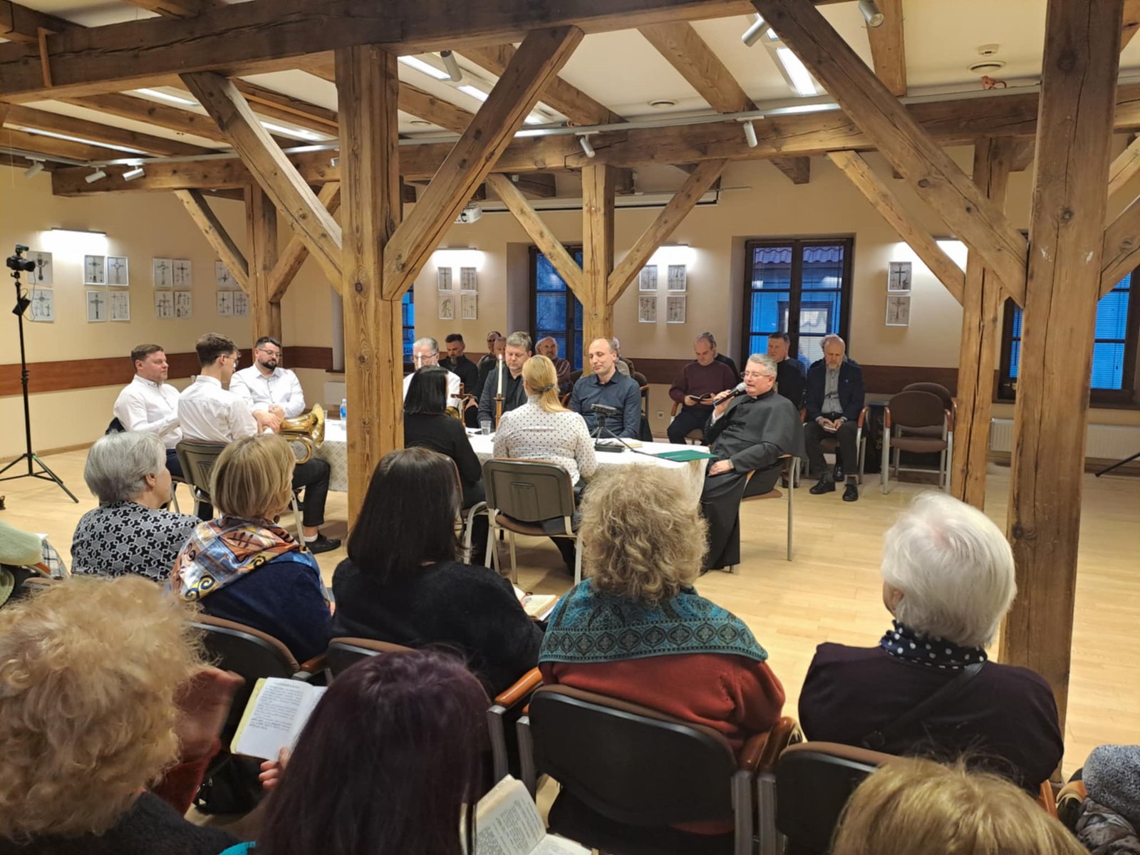 Vakaro svečiai – „Telšių dūdoriai“ (vad. Darius Jurgutis) ir „Telšių giedoriai” (Ernesta Dargužienė, Kristina Būtienė, Valdas Dargužis, Rimantas Būta). Vakarą vedė kun. prof. dr. Saulius Stumbra, kuris leido dar geriau suprasti Tradicinių giedojimų svarbą ir jų istorinį kontekstą. Šių metų kovo mėnuo ypatingas – minime 35-ąsias atkurtos Lietuvos Nepriklausomybės metines. Prieš 35 metus, 1990 m. kovo 10 d., tikėjimo kupini žmonės rinkosi į šv. Antano Paduviečio katedrą Telšiuose, meldžiant, kad susirinkęs LR Seimas atkurtų Lietuvos Respublikos Nepriklausomybę.