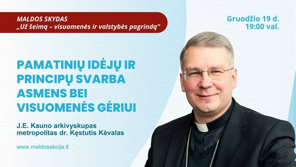 Jo metu tema: „Pamatinių idėjų ir principų svarba asmens bei visuomenės gėriui” savo mintimis dalinsis J. E. Kauno arkivyskupas metropolitas dr. Kęstutis Kėvalas.