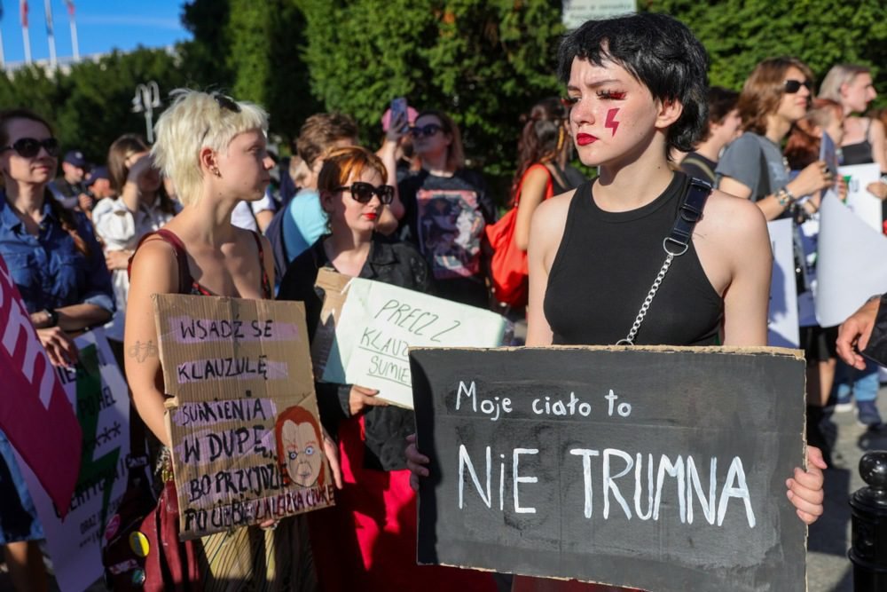 Lenkijos moterų teisių gynimo grupės apkaltino valdantįjį aljansą, kad šis nevykdo savo rinkimų pažadų, ir paragino surengti protestus visoje šalyje. Pagrindinis mitingas vyko prie parlamento pastato Varšuvoje.