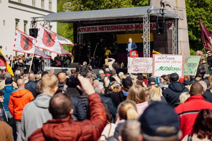 Tūkstančiai žmonių sekmadienį Vilniuje, Katedros aikštėje, susirinko į protesto akciją prieš visuotinį nekilnojamojo turto (NT) mokestį.
