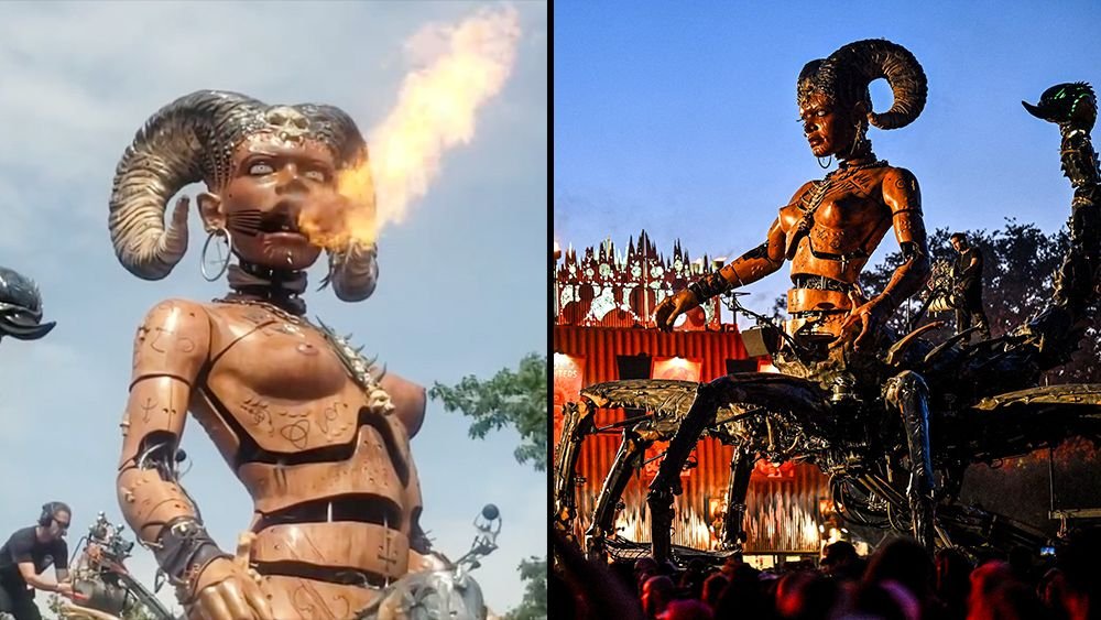 Didinga mechaninė demoniškos pusiau moters atvaizdo figūra iš pradžių buvo pastatyta tarptautiniam metalo muzikos festivaliui „Hellfest“ Bretanėje praėjusią vasarą.