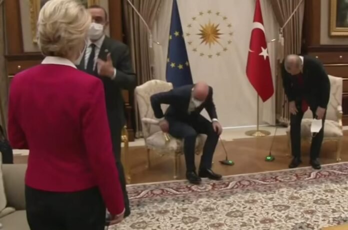 Ankara trečiadienį apkaltino Europos Sąjungą, kad ji pati pasirinko tokią sėdimųjų vietų tvarką, jog Europos Komisijos pirmininkė Ursula von der Leyen (Urzula fon der Lajen) per susitikimą su Turkijos prezidentu Recepu Tayyipu Erdoganu (Redžepu Tajipu Erdohanu) turėjo sėdėti ne ant krėslo, o ant sofos.