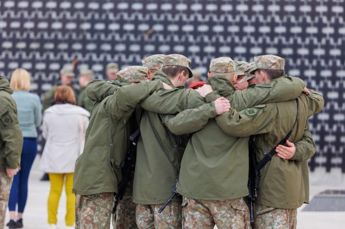 moteris tarp 30 ir 40 ir tarp 40 ir 50 metų, jos daug labiau nusiteikusius ginti gal ne ginklu, o kitomis priemonėmis, o jaunos moterys – tarp 18 ir 29 metų – jos daugiau labiau linkusios arba pasitraukti iš Lietuvos, ar laikytis nuošalyje