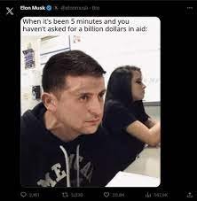 Jam priklausančiame „X“ pirmadienį jis paskelbė memą, kuriame virš suredaguotos V. Zelenskio nuotraukos buvo parašyta: „Kai praėjo penkios minutės, o tu dar nepaprašei milijardo dolerių pagalbos.“