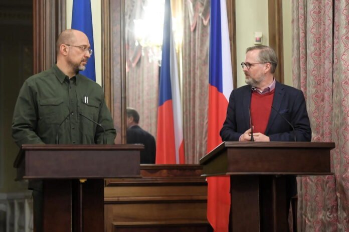 „Užblokuoti uostai, subombarduotos gamyklos, bandymai sužlugdyti sėją, sugriauti miestai. Visa tai yra Rusijos plano sunaikinti Ukrainos ekonomiką dalis. Nuostoliai jau viršija 500 mlrd. JAV dolerių, o mūsų ekonomika šiais metais gali sunykti 30-50 procentų. Ukrainai atsilaikyti būtina partnerių finansinė parama. Skaičiuojame, kad per ateinančius šešis mėnesius trumpalaikė pagalba turėtų siekti 4-5 mlrd. dolerių kas mėnesį“, – sakė Ukrainos vyriausybės vadovas.