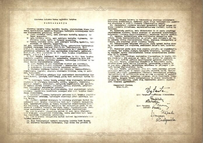 „Prieš 74 metus pasirašytoje deklaracijoje pirmą kartą įvardinamas aiškus Lietuvos pasirinkimas – vakarietiška geopolitinė orientacija“, – pastebi D. Žalimas.