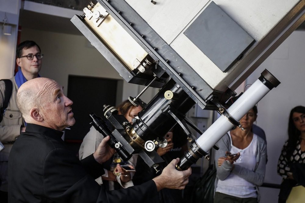 Vatikano observatoriją, vadinamą Specola Vaticana, 1891 m. įsteigė popiežius Leonas XIII, siekdamas skatinti tikėjimo ir mokslo dialogą. Susirinkime dalyvavo keturiasdešimt fizikų, tarp jų – Adamas Riessas (Adamas Rysas), apdovanotas Nobelio premija už tai, kad įrodė, jog visatos plėtimasis greitėja, ir Rogeris Penrose’as (Rodžeris Penrauzas), gavęs Nobelio premiją už novatorišką juodųjų skylių tyrimą.