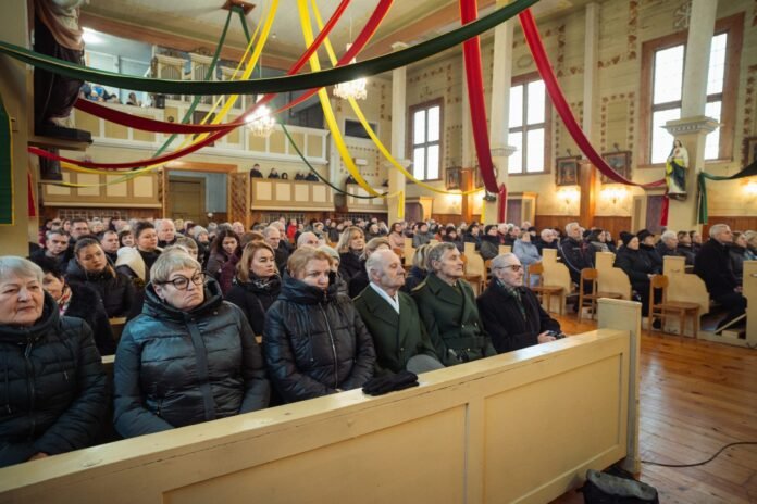 Šv. Mišiose giedojo parapijos choras (vadovas Rolandas Žakys), vargonais grojo Jurgita Urbutytė-Underienė. Šv. Mišių pabaigoje visi sugiedojo „Tautišką giesmę“ ir „Marija, Marija“.
