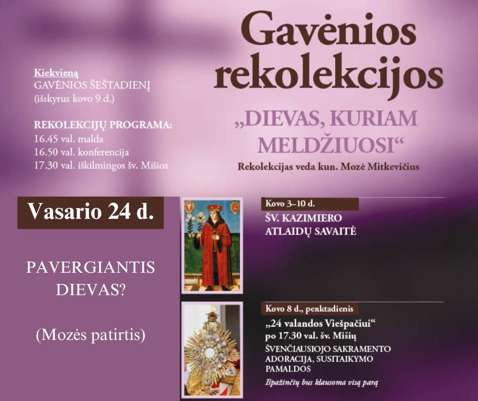 Šio šeštadienio rekolekcijas pavadinimu „Pavergiantis Dievas” ves kunigas Mozė Mitkevičius.