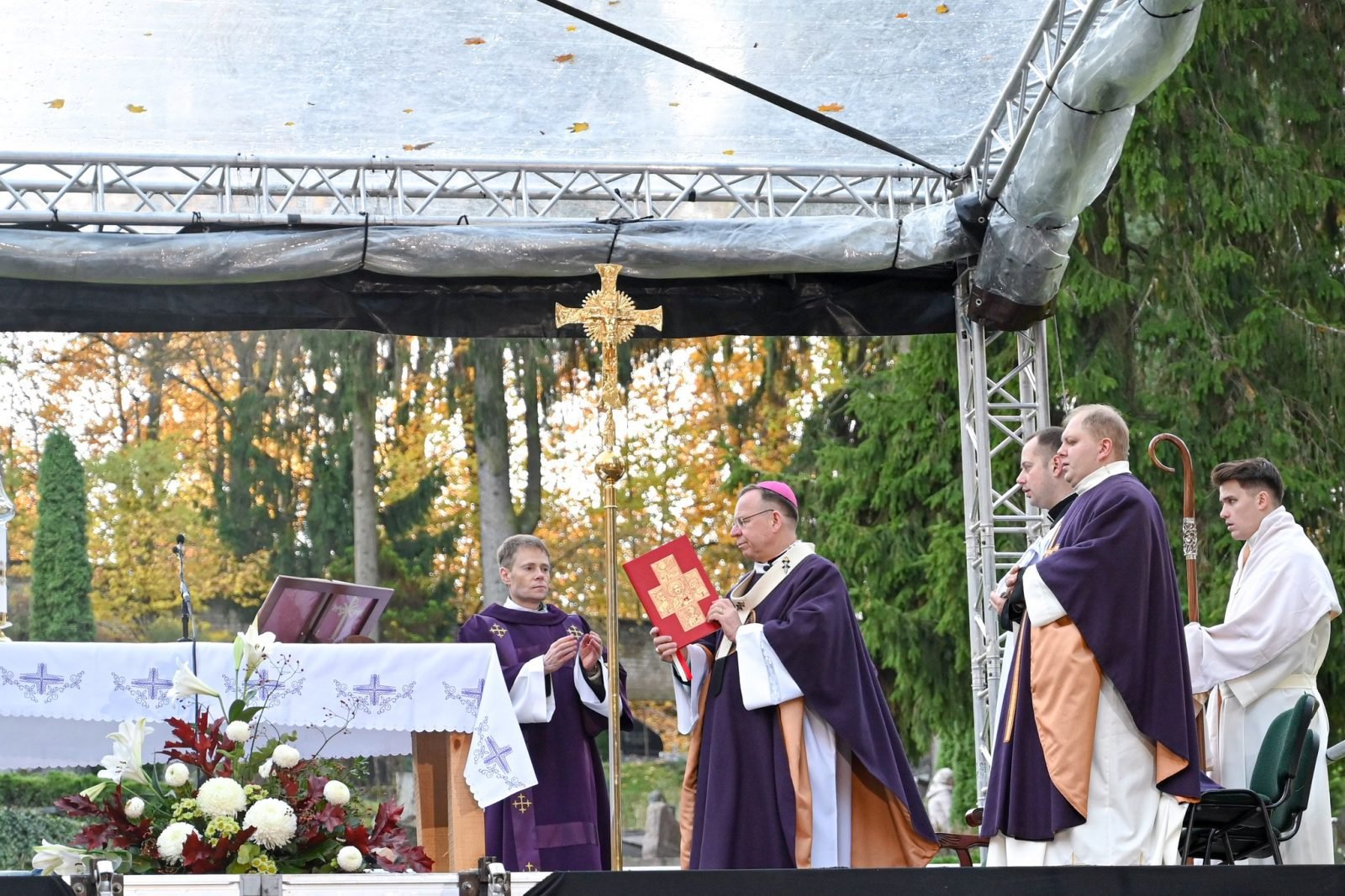 „Mes tarnaujame vieni kitiems gailestingumo darbais – gailestingumo darbais kūnui ir sielai. O kapinės mums primena apie ypatingus gailestingumo darbus: numirusį palaidoti ir melstis už mirusius”, – sakė jis.