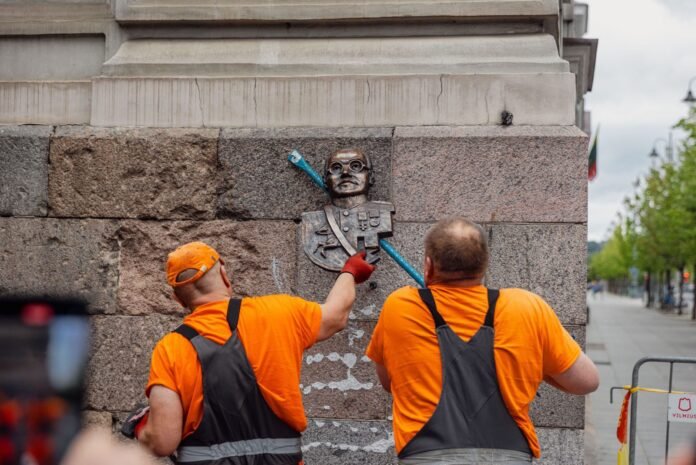 Vilniuje sekmadienį popiet pašalinta be leidimo pulkininkui K. Škirpai pakabinta atminimo lenta, kurią penktadienio vakarą pakabino Nacionalinis susivienijimas.