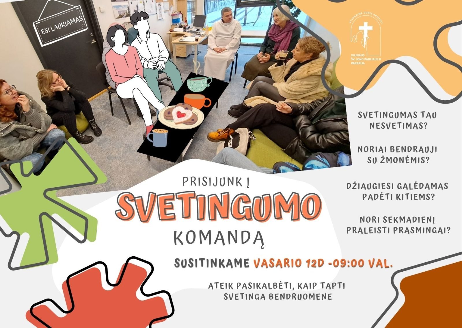 Vilniaus Šv. Jono Pauliaus II parapija nori būti svetinga bendruomene, kur gerai jaustųsi tiek bendruomenės nariai, tiek jos svečiai, todėl buria svetingumo komandą.