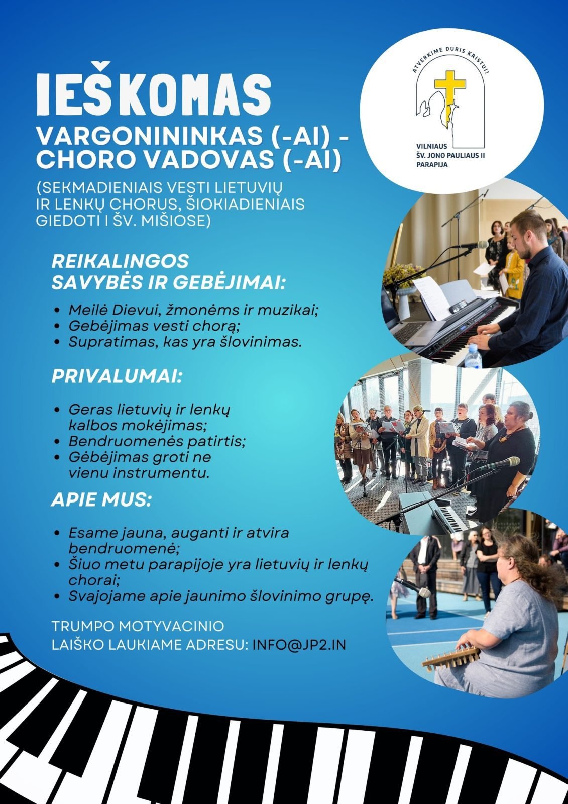 Vilniaus Šv. Jono Pauliaus II parapija ieško vargonininko – chorvedžio.