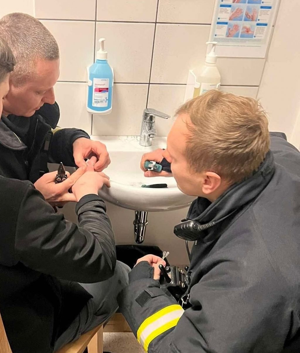 Antradienio vakarą žiedą ugniagesiai nuėmė per pusvalandį. Pasak pamainos vado, tokios operacijos metu būtinas ypatingas kruopštumas ir atsargumas, nes vaikas gali krūptelėti, pajudėti.